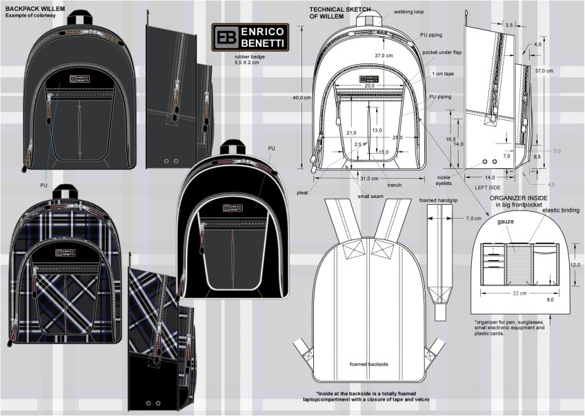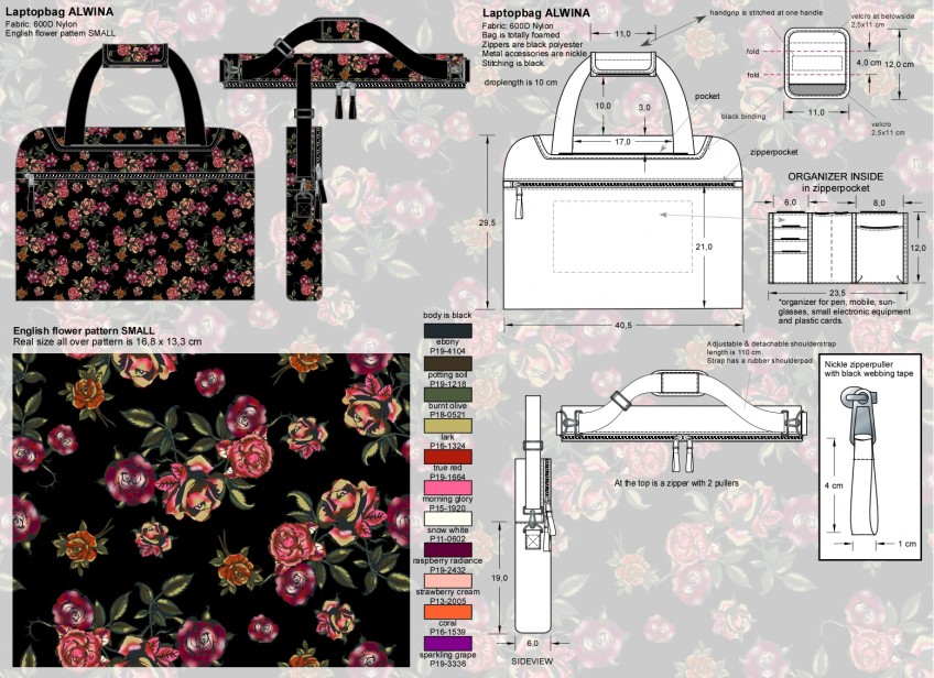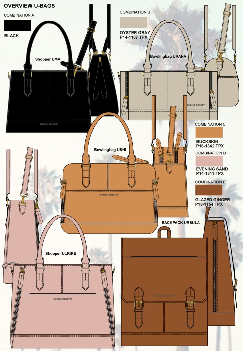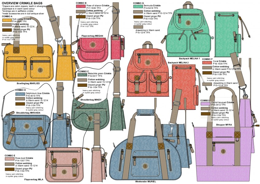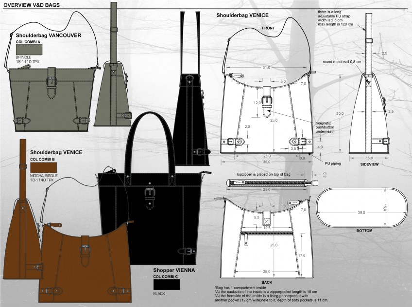 I have designed bags for over 15 years for different clients, it is one of my specialties. And I think bags are a very interesting product and I like to draw them very much. Mostly I have designed ladies bags, but schoolbags (including printed patterns) and sportsbags I also drew a lot. This is a very small selection.