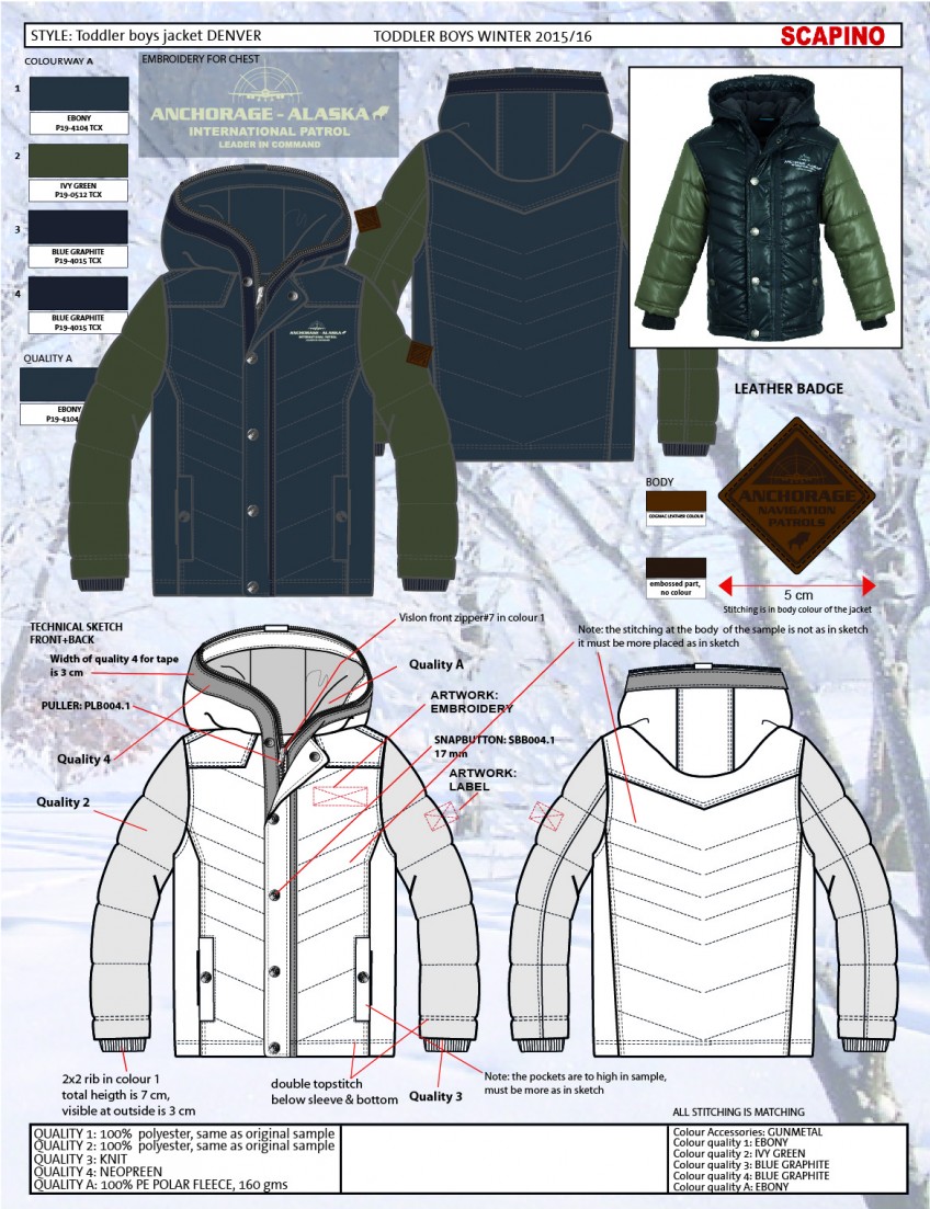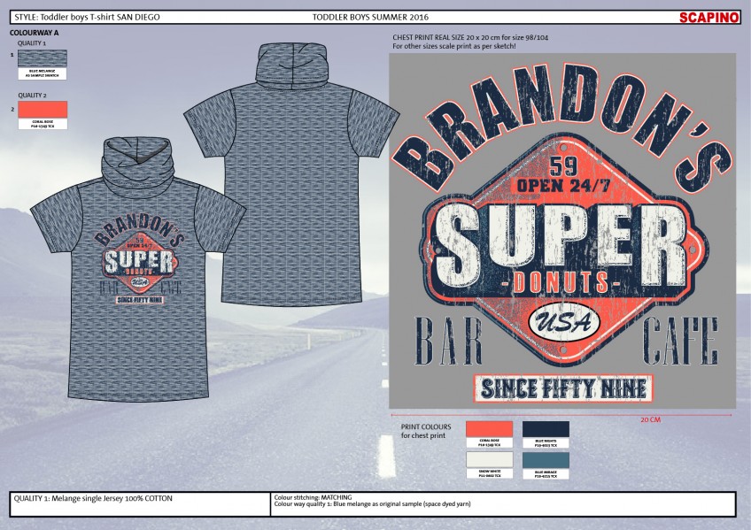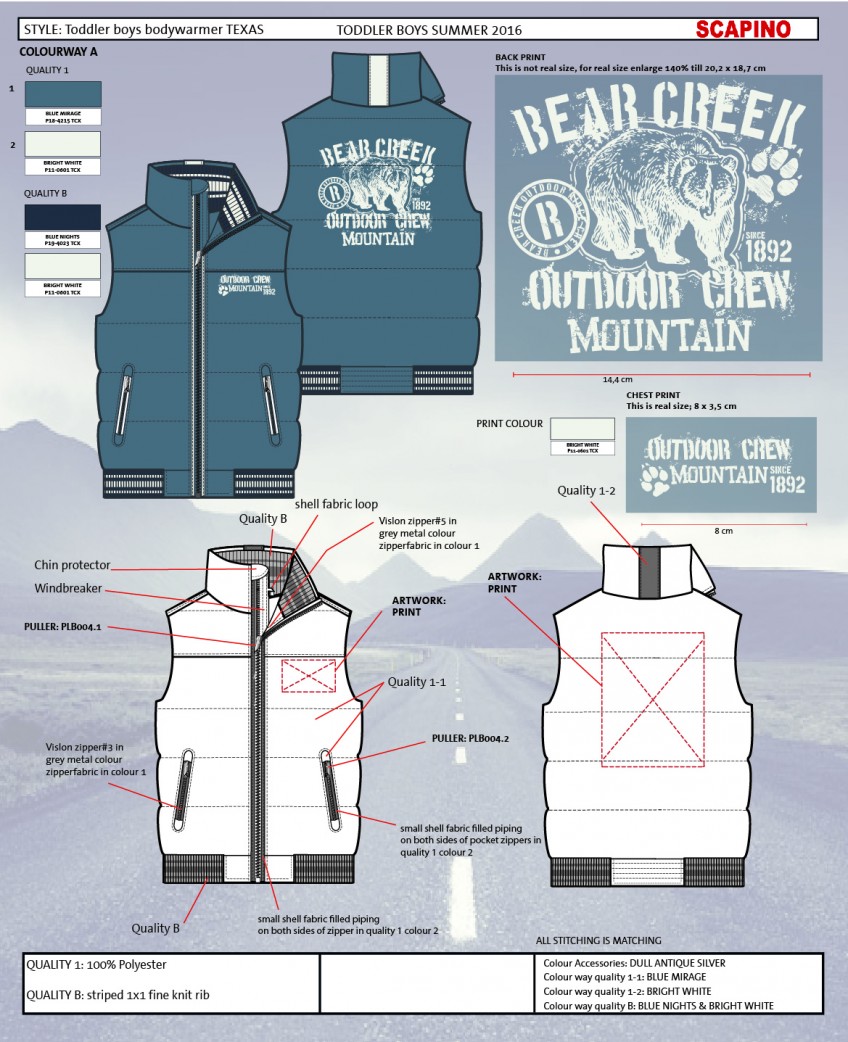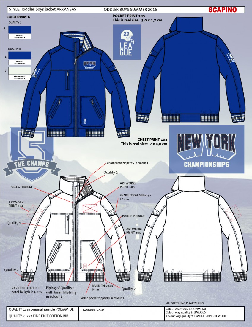 • For several clients I have designed boys apparel over the past years. These design commissions included knitted aswell as woven products. I have designed the whole spectrum of products for boys, such as coats, jackets, shirts, T-shirts, sweats, pulls, pants, etc. Including patterns, prints, labels and hangtags. This is a small selection of these designs.