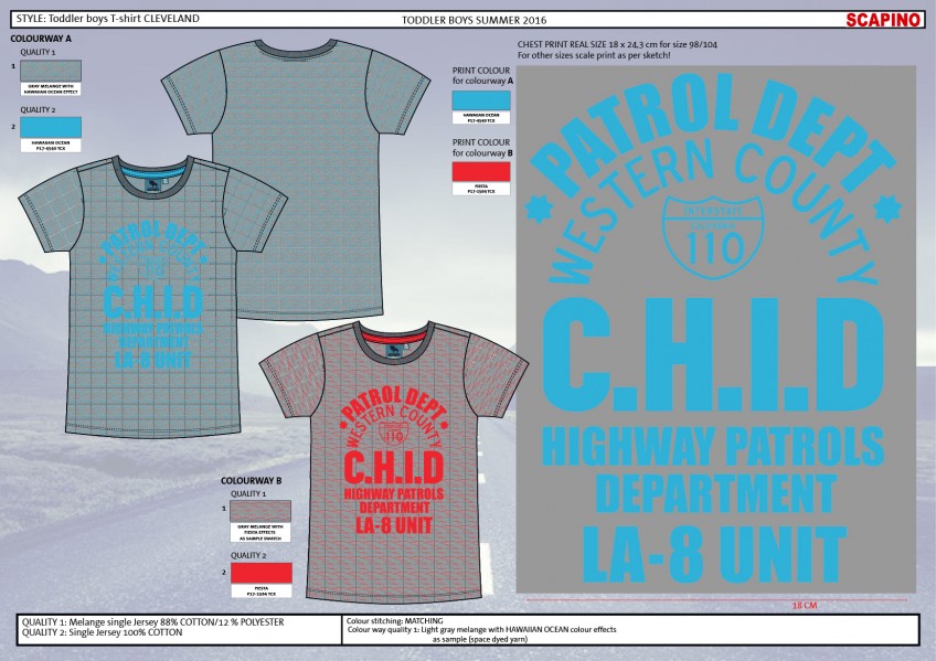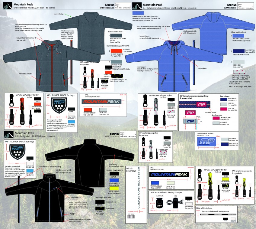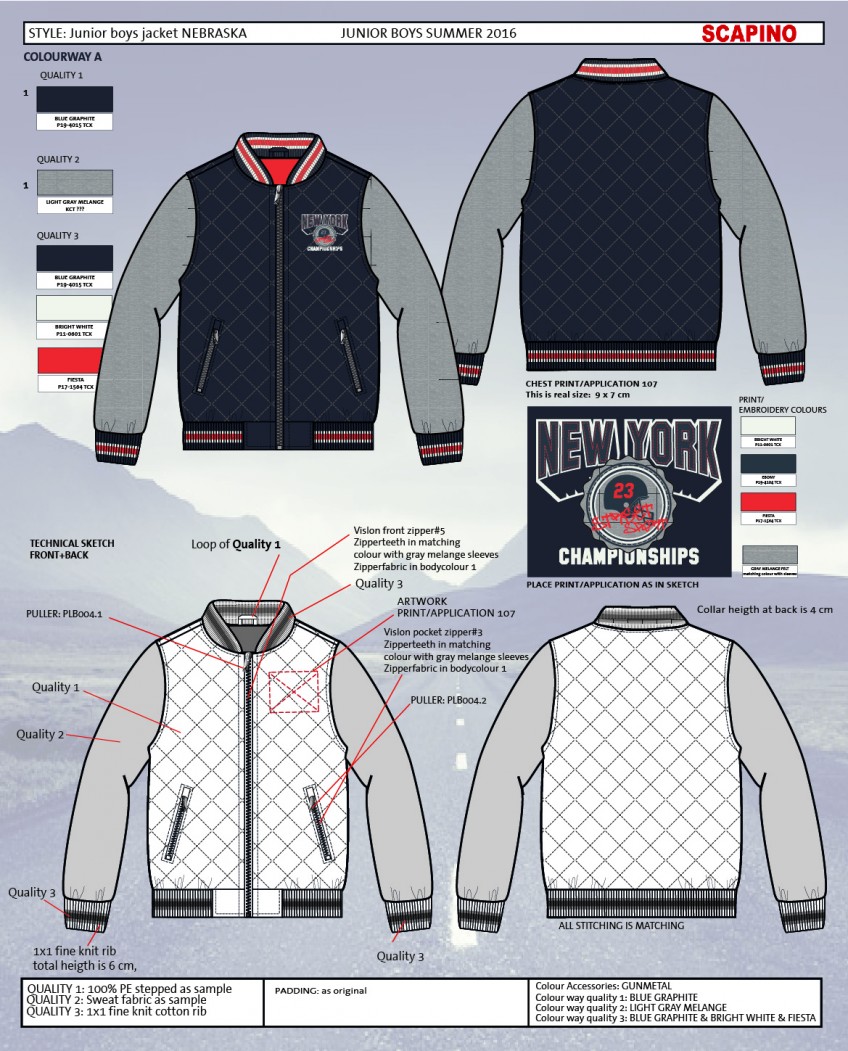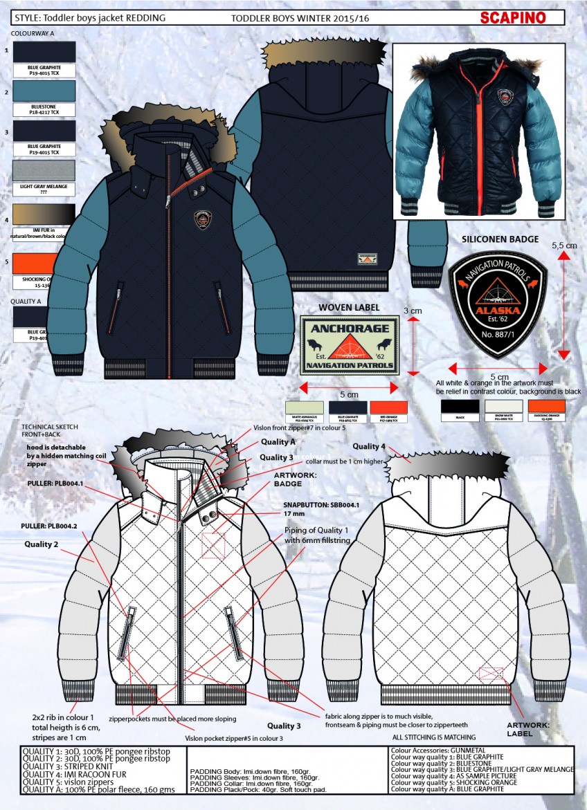• For several clients I have designed boys apparel over the past years. These design commissions included knitted aswell as woven products. I have designed the whole spectrum of products for boys, such as coats, jackets, shirts, T-shirts, sweats, pulls, pants, etc. Including patterns, prints, labels and hangtags. This is a small selection of these designs.