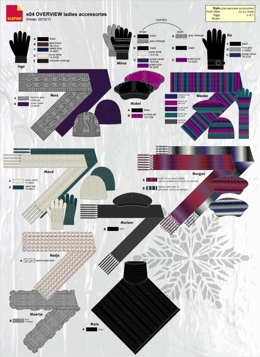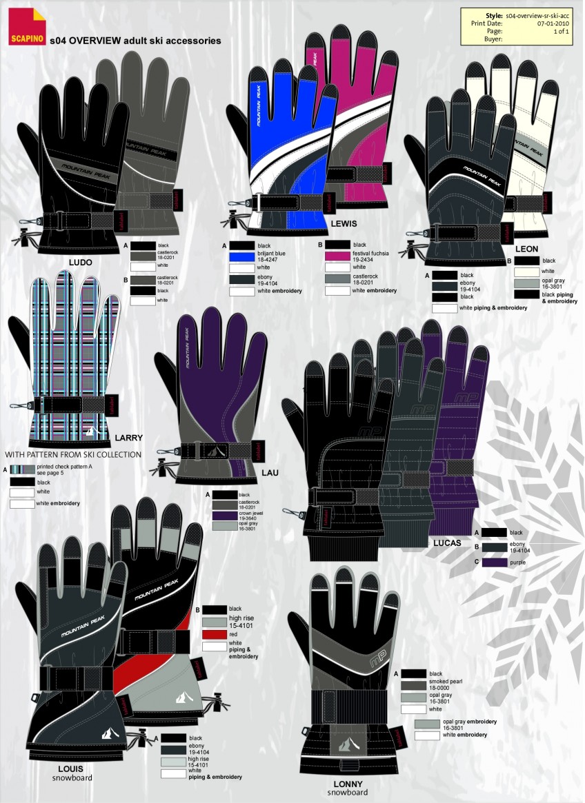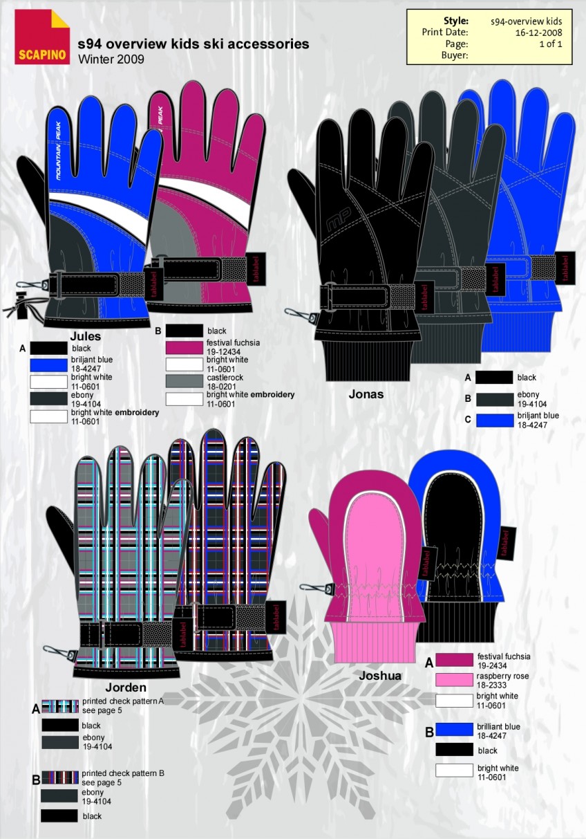 I have designed for several seasons winter accessories and they can be split up in 2 different groups. First you see a few designs of woven ski glooves for men, women and children.