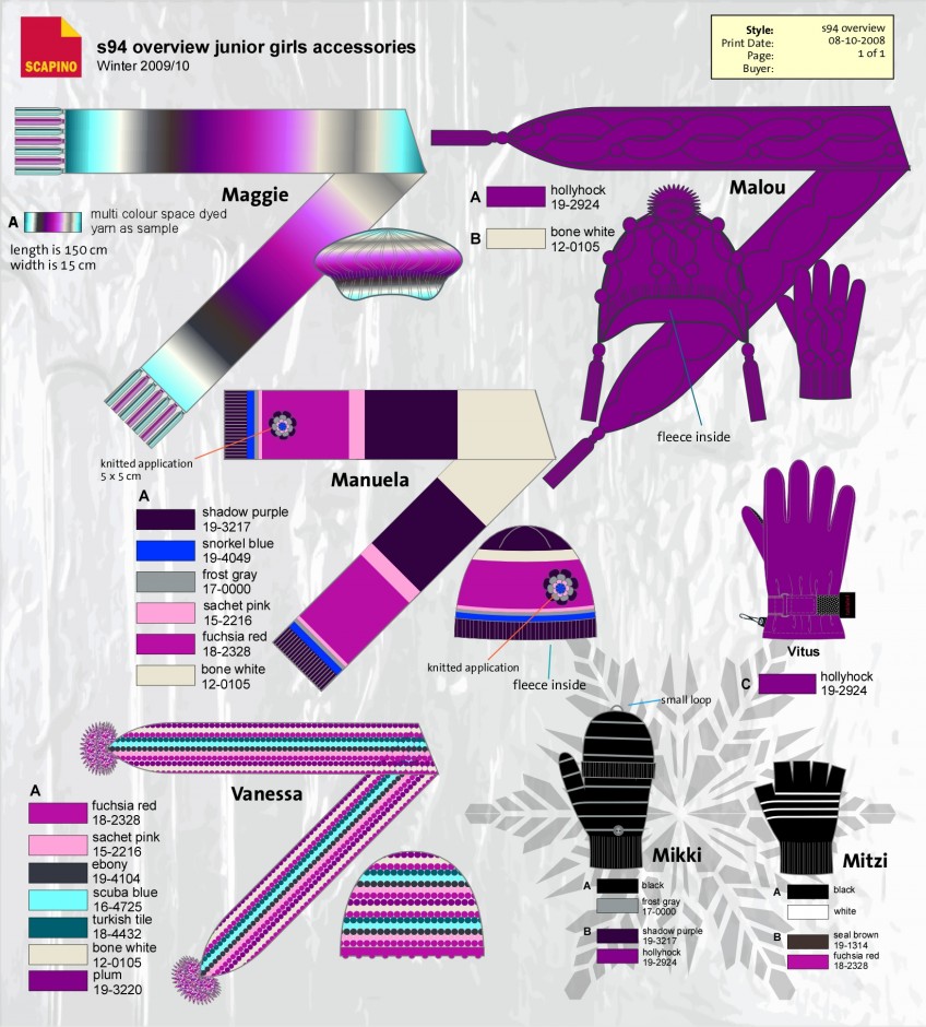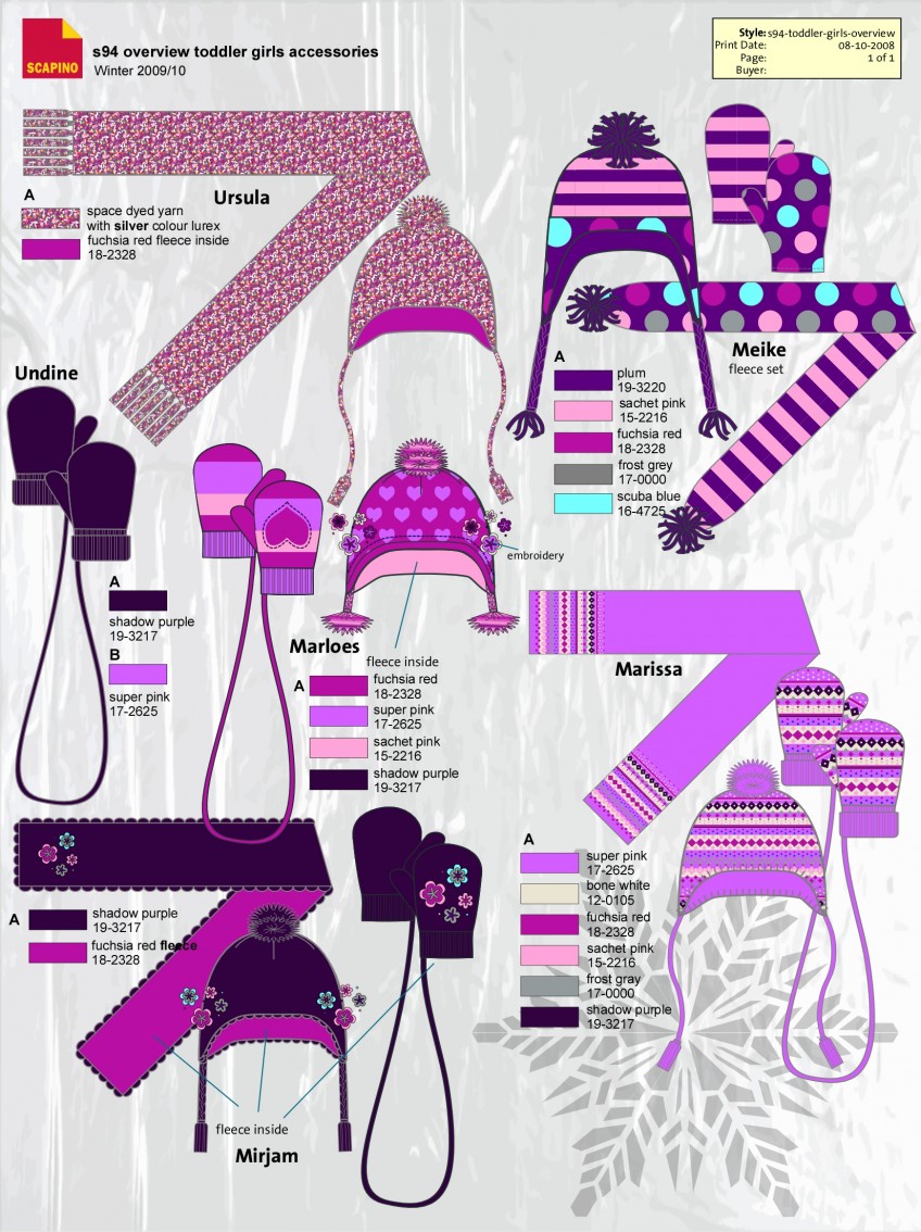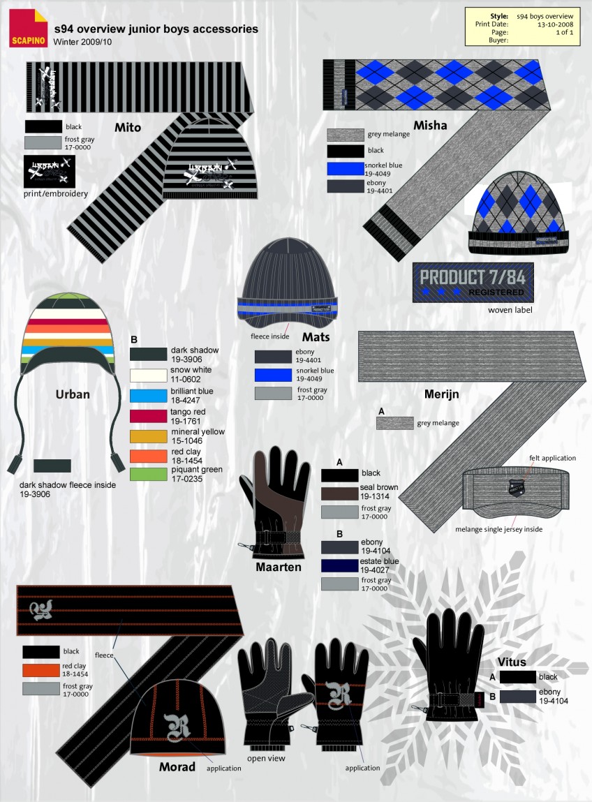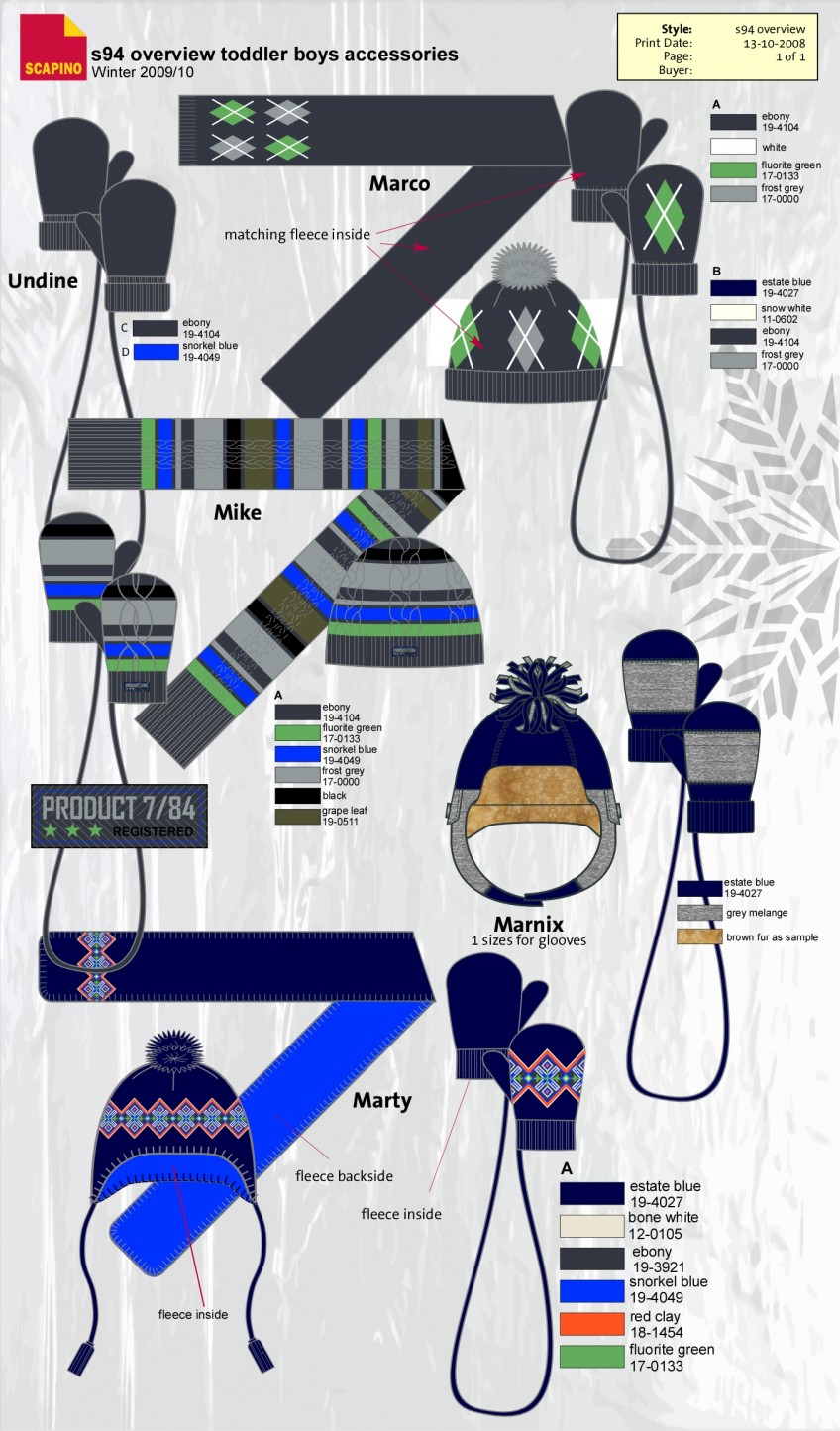 I have designed for several seasons winter accessories and they can be split up in 2 different groups. First you see a few designs of woven ski glooves for men, women and children.