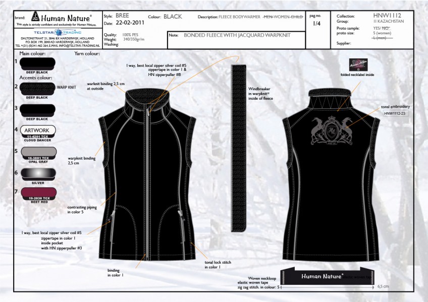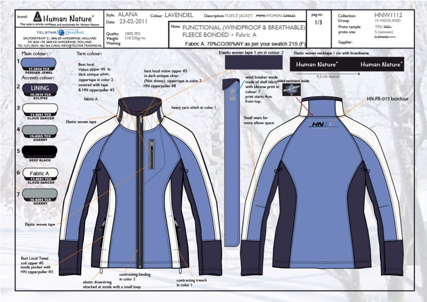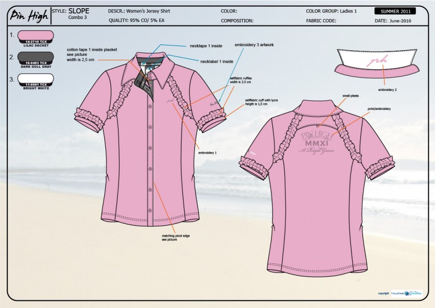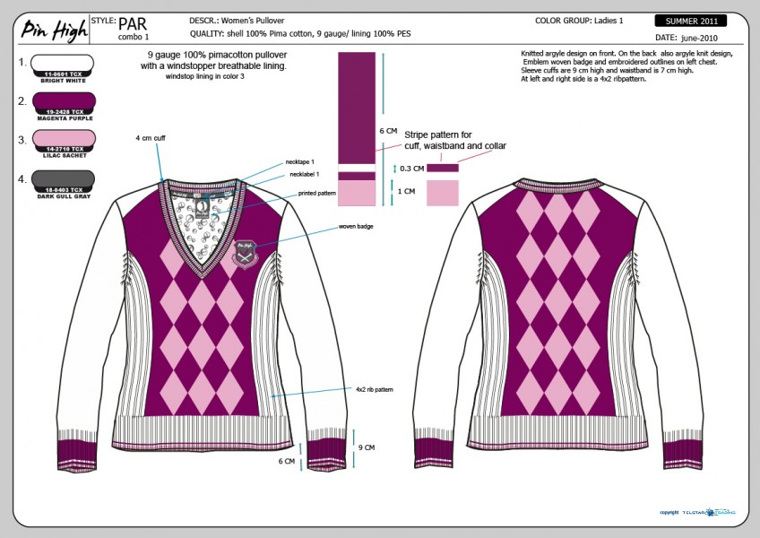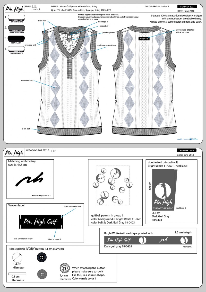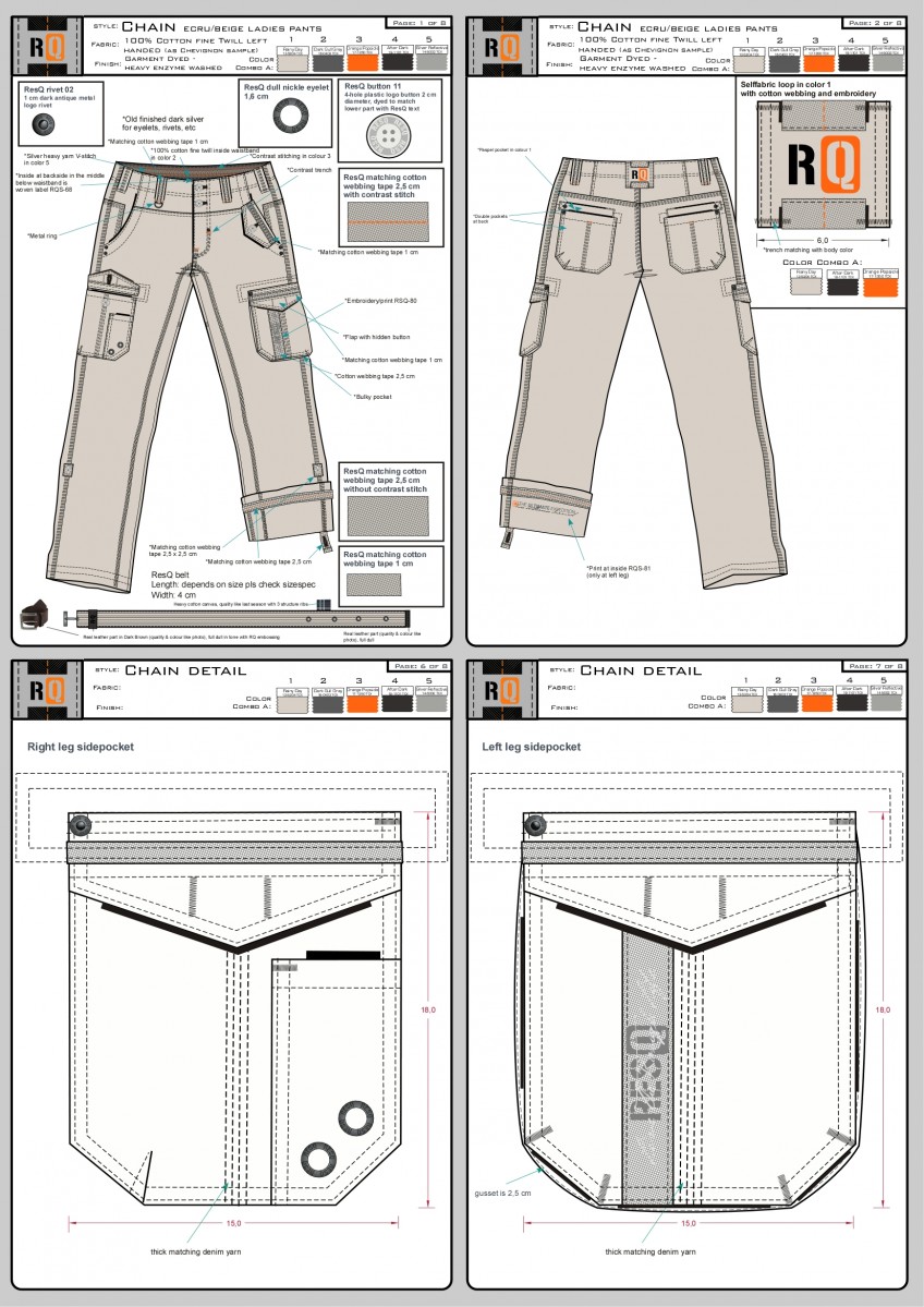 I have designed the whole spectrum of products for women, such as coats, jackets, shirts, sweats, pulls, pants, skirts, etc. Including patterns, prints, labels and hangtags.